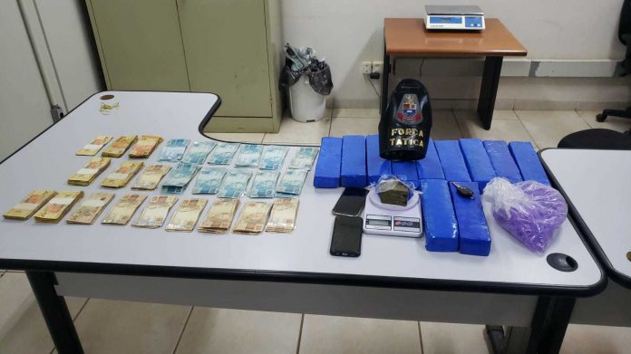 “Voltamos ao local onde os inviduos informaram e avistamos um indivíduo com duas peças de maconha na mão, que ao perceber a viatura saiu correndo para o fundo da residência, arremessando a droga e uma sacola cheia de dinheiro, seguimos no encalço e o abordamos. Localizamos as drogas, o dinheiro e uma balança de precisão”, disseram os policiais.