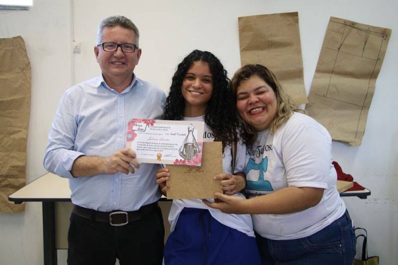 “Venho sonhando com esse curso há muitos anos, mas nunca tive a oportunidade. Quando descobri que seria oferecido pela Prefeitura, foi minha maior alegria. Tenho uma máquina caseira e já comecei a consertar roupas com o que aprendi. É um sonho de muitos e muitos anos realizado”, contou a aluna Jozenita Pires de Almeida.