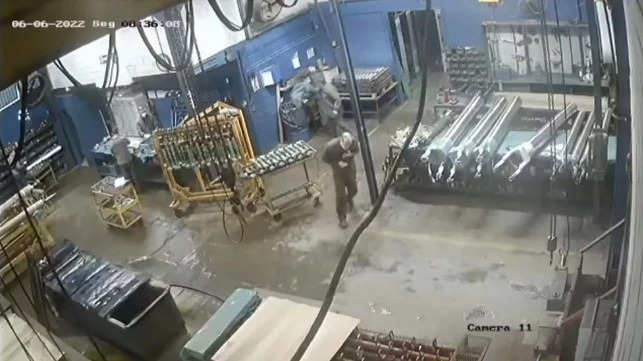 Imagens da câmera de segurança da empresa mostraram o momento em que a vítima saiu de uma sala com a mão no peito e cambaleando. Ele passou por um setor em que outros funcionários estavam trabalhando e saiu pela porta. Em seguida, o homem que, segundo a polícia, é o suspeito do crime foi atrás da vítima, mas não pareceu prestar socorro.