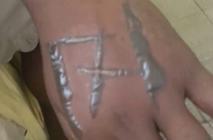 A “tatuagem” teria sido feita com um ferro quente, de acordo com o Ministério Público do Trabalho da Bahia. Outras imagens mostram a segunda vítima levando pauladas nas mãos.