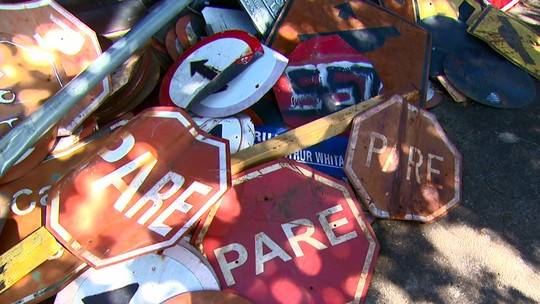 Para tentar resolver o problema, a prefeitura está mudando o material das placas, que acabam sendo facilmente negociadas e vendidas quando furtadas.