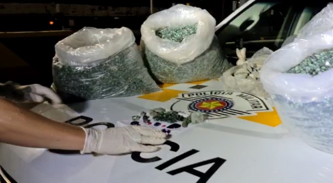 Durante busca veicular foi localizada grande quantidade de jóias preciosas (vídeo abaixo), de diversos tipos e características (parecendo ser ESMERALDAS, RUBIS, ALEXANDRITAS, TURMALINA DA PARAIBA, AMETISTA, etç) pesando total aproximado de 100kg destas pedras (não foi possível estimar o valor até o momento tendo em vista a grande quantidade).