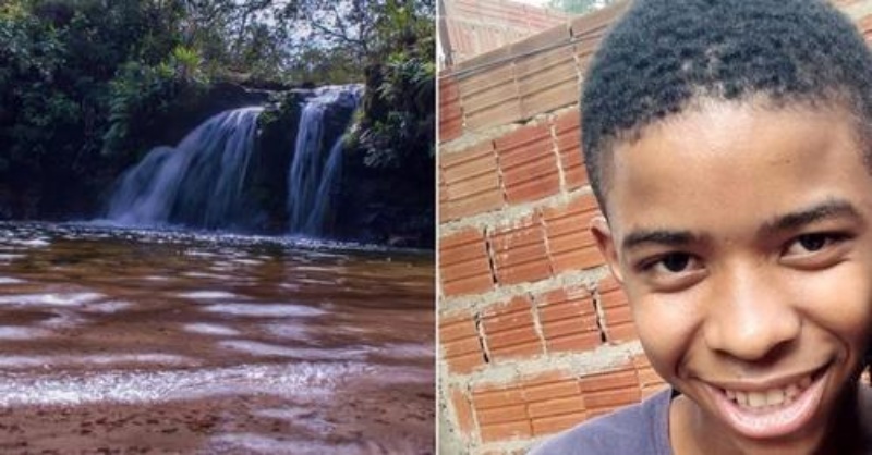 A equipe dos bombeiros mergulhou na cachoeira e localizou o corpo do adolescente, que estava a 3 metros de profundidade.