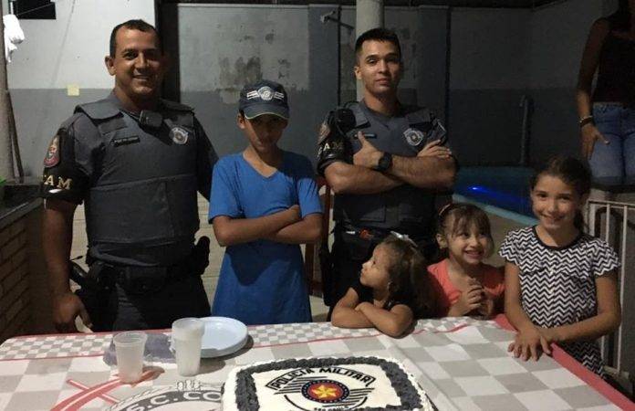 Atendendo ao pedido do garoto que queria a presença dos policiais militares, com viaturas com sirenes e faróis acesos, a mãe solicitou a presença dos heróis de farda.