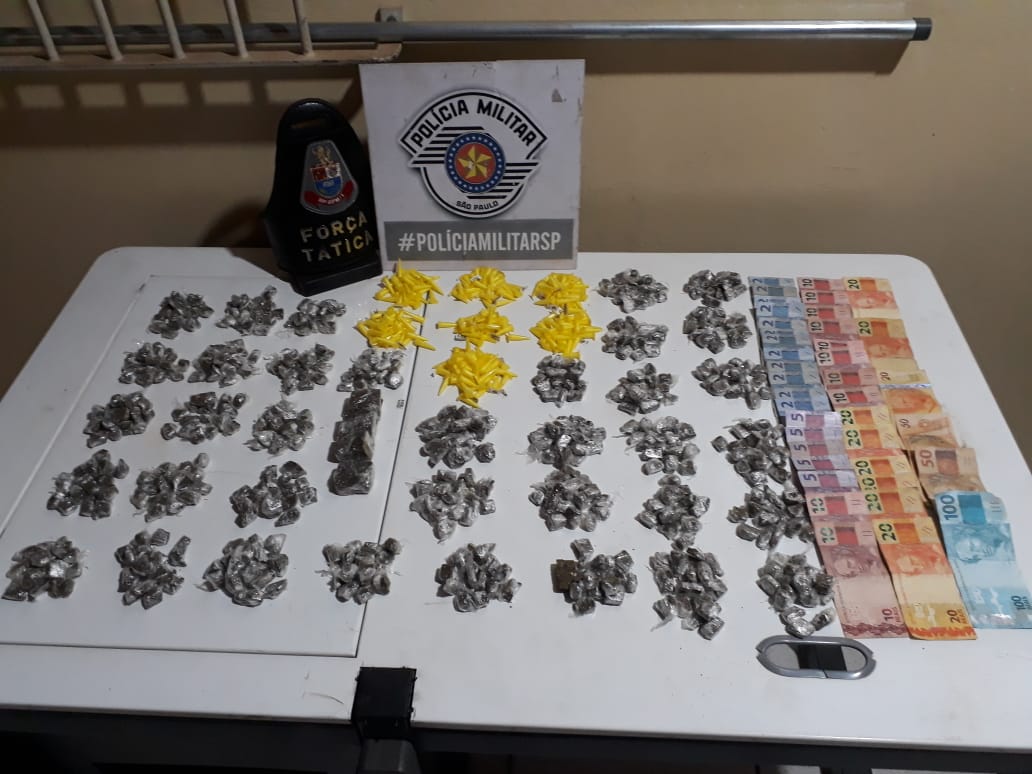 Em conversa com os policiais após a localização das drogas, ele viu que não tinha mais o que esconder e indicou um local em meio a palha de cana seca onde a equipe encontrou uma sacola contendo 35 envólucros de maconha totalizando 577 porções e 04 tijolinhos menores, e ainda mais 06 envólucros de cocaína totalizando 210 pinos, além da quantia de R$ 389,00 onde totalizou R$529,00 em dinheiro, proveniente da tráficância.