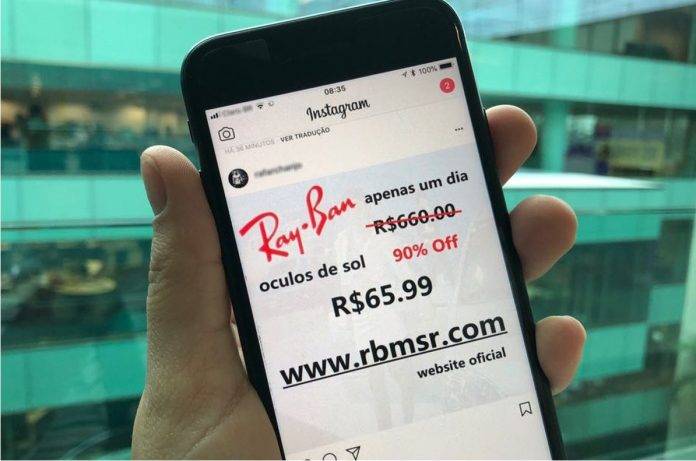 A suposta promoção está sendo distribuída principalmente pelo Instagram. Ela promete uma unidade de óculos de sol com até 90% de desconto. Quando a vítima tenta comprar o produto, acaba cedendo dados pessoais para golpistas.