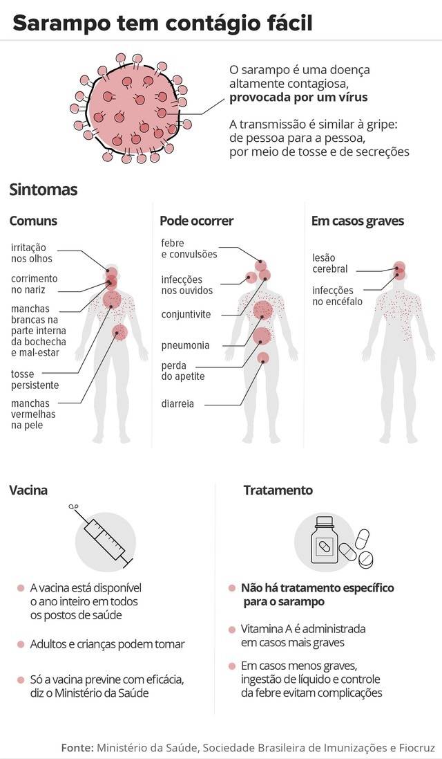 O Brasil tem 822 casos confirmados de sarampo em 2018. Atualmente, enfrenta dois surtos da doença, em Roraima e no Amazonas. Segundo o governo, eles estão relacionados à importação de casos de outros países.