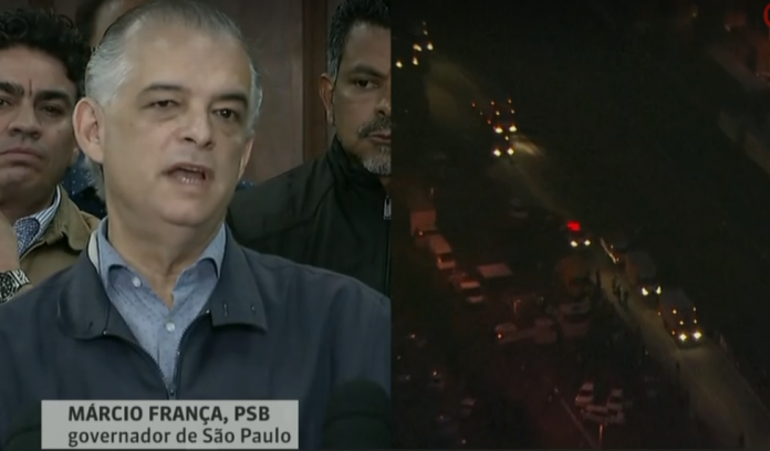 O governador de São Paulo, Márcio França (PSB), determinou neste sábado (26) a suspensão da cobrança de tarifa de pedágio para eixo elevado dos caminhões nas rodovias paulistas. A declaração foi feita em entrevista coletiva à imprensa neste sábado (26) no Palácio dos Bandeirantes.