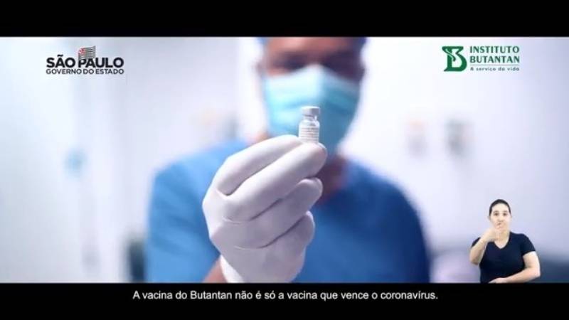 A peça traz palavras de incentivo como: “a vacina do Butantan não é só a vacina que vence o coronavírus. É vacina que vence a incerteza, que traz de volta a esperança”. No fim ela reforça que a vacina é de todos: “É do Butantan. É de São Paulo. É do Brasil”.