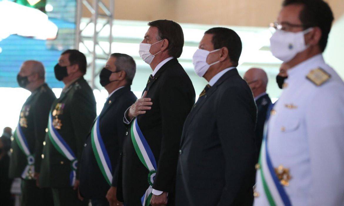 “Temos um governo que joga estritamente dentro das quatro linhas da nossa Constituição. Isso é sinal de paz, harmonia e progresso para todos”, afirmou Bolsonaro durante cerimônia de comemoração aos 22 anos do Ministério da Defesa.