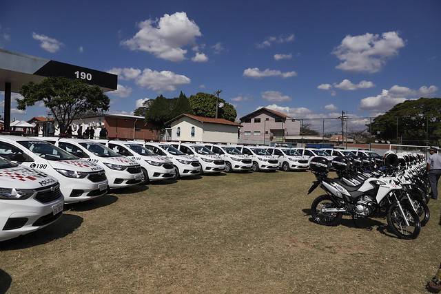 O Governador em exercício Rodrigo Garcia e o Secretário da Segurança Pública, General João Camilo Pires de Campos, entregaram, na tarde desta quinta-feira (8), 70 viaturas para reforçar a frota da PM da região de Piracicaba, no interior do Estado.