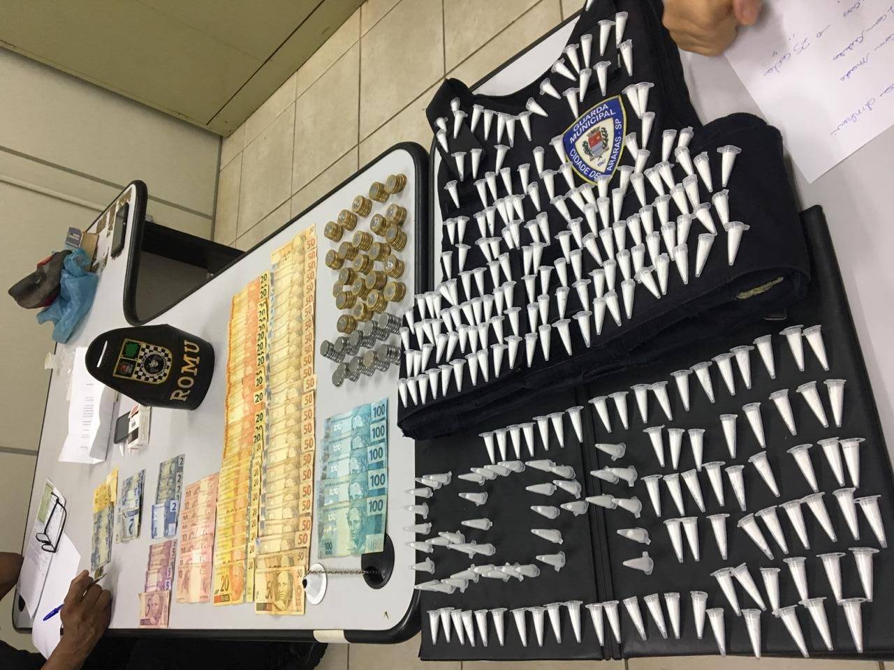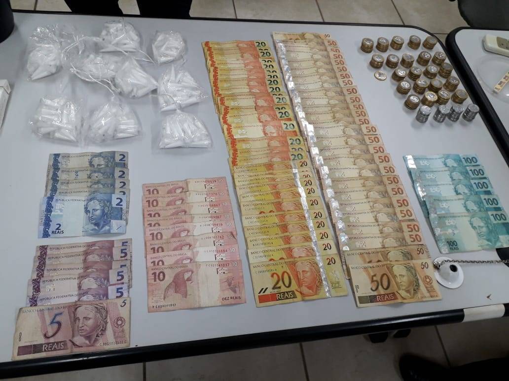 Durante a ação de combate ao crime, foram apreendidos mais de 266 pinos de cocaína, R$ 2.748,00 mil reais em dinheiro.