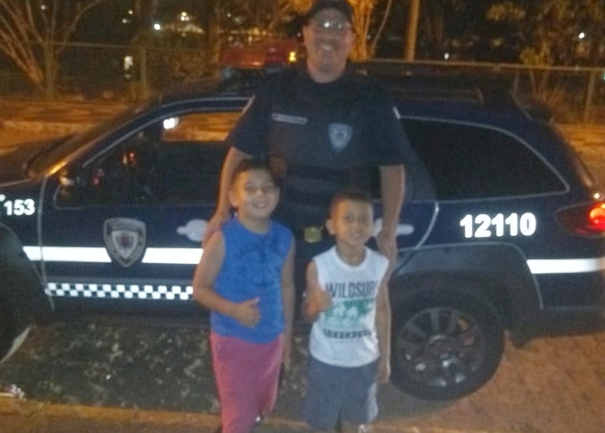 Na noite desta sexta-feira (04), durante seu patrulhamento de rotina o GCM Augusto foi surpreendido pelos garotos Benjamim Neto e João Neto, que estavam eufóricos pediram para tirar uma foto com o patrulheiro.