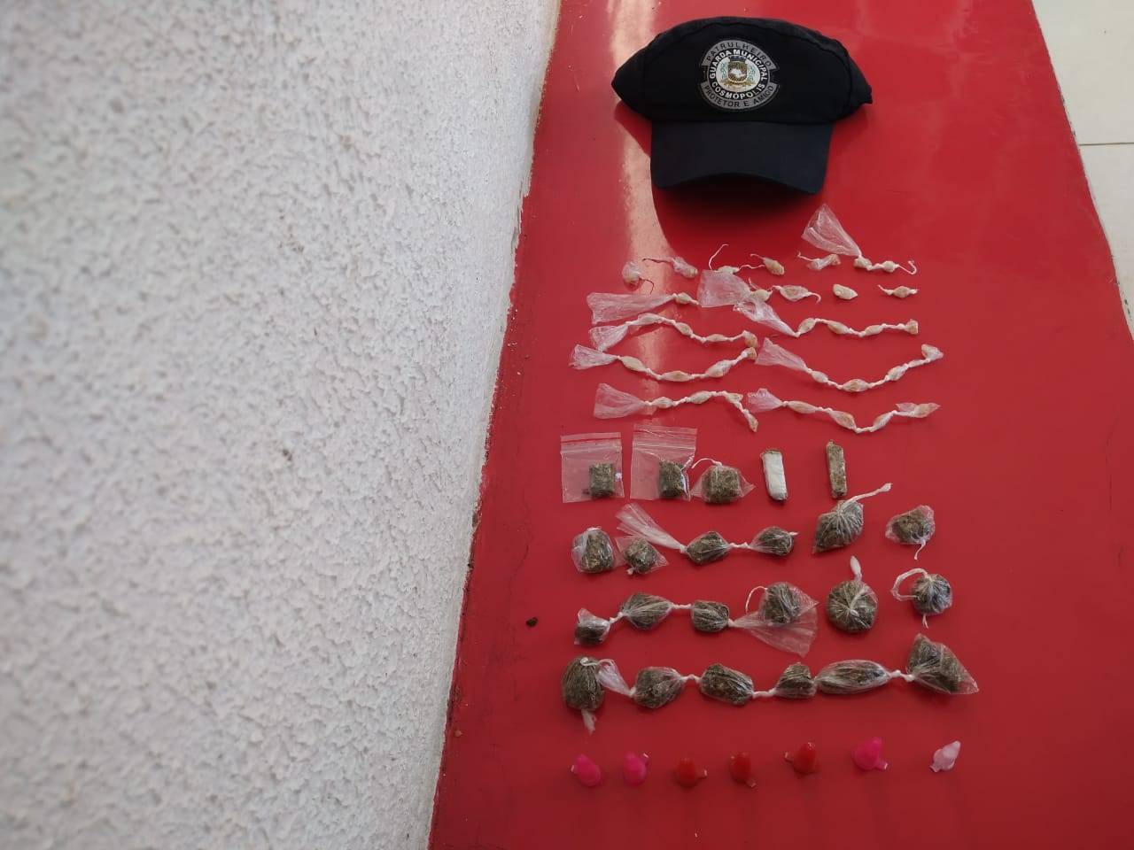 Ao se deslocarem para realizarem abordagem, os agentes perceberam que os mesmo, saíram correndo, e devido a distância dos suspeitos não foi possível localizá-los. Ao retornarem ao local, foi encontrada uma bolsa em meio ao mato, sendo constatado que os objetos localizado se tratava de substâncias ilícitas.