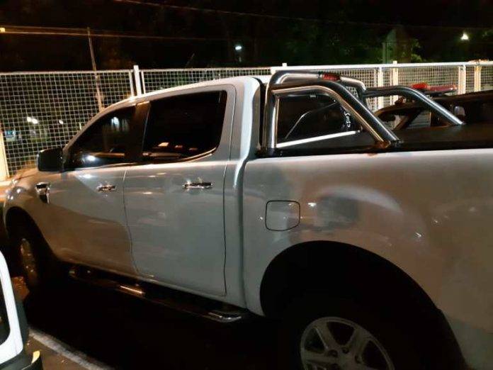 Na madrugada desta quinta-feira (21), por volta da 00h15, a viatura 446 foi enviada ao bairro Jardim Nova Rio Claro, para averiguar denúncia de uma caminhonete branca que foi deixada por dois indivíduos na Rua 22 e que voltariam posteriormente para retirá-la do local.