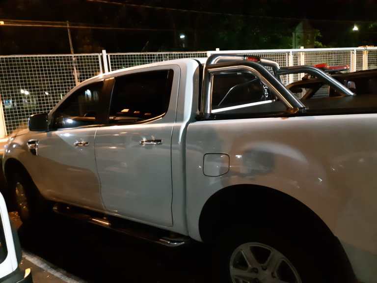 As equipes da GCM já tinham a informação do roubo de uma Ford Ranger da cor branca que ocorreu horas antes. No local, com o apoio da Equipe GAM, foi localizada a referida caminhonete roubada. O veículo estava intacto, feito contato com a vítima que providenciou a chave reserva para a condução do fato ao plantão policial.