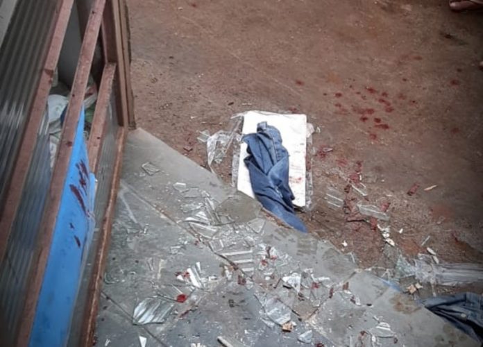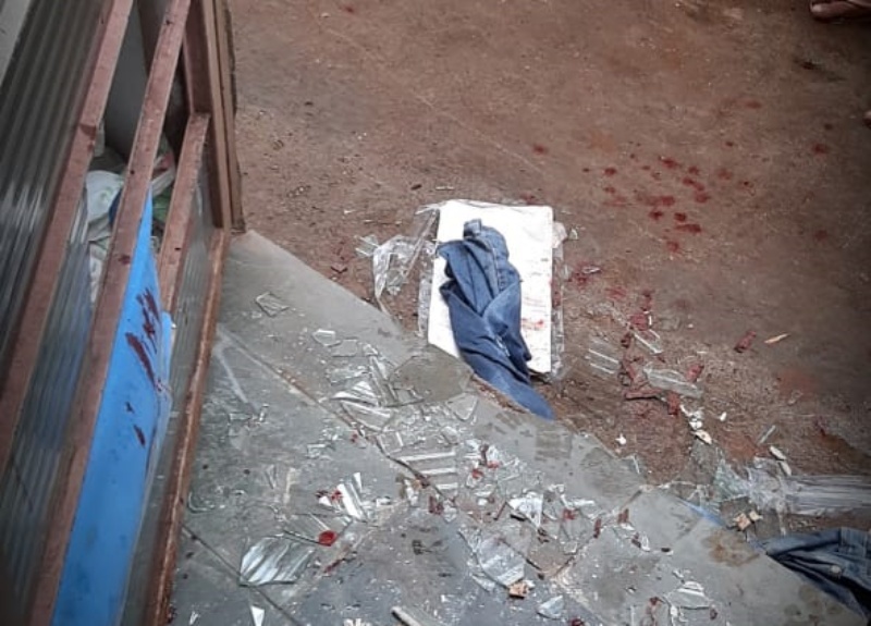 Ela, que se encontrava com vestigios de sangue, que seriam provenientes do companheiro, que a teria agredido com tapas no rosto após ter se cortado com estilhaços de vidros de uma porta, quebrada por ele com socos, declarou que fora também agredida com socos na cabeça e chute no tórax e que o seu companheiro estaria trancado dentro de casa.