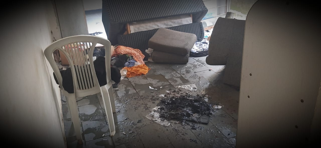 Os guardas, então, pularam o portão, convenceram o indivíduo a abrir a porta e, utilizando baldes com água, contiveram o incêndio que passava a se alastrar.