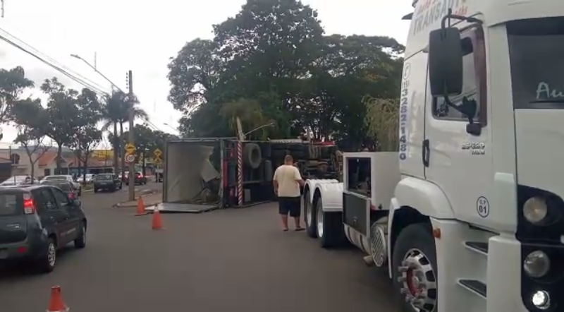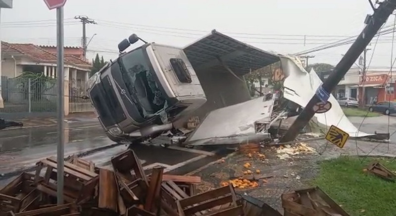 Na tarde desta segunda-feira (31), uma equipe da Guarda Civil Municipal esteve auxiliando no destombamento de um caminhão que estava carregado com laranjas que tombou, atingindo um poste na tarde deste domingo (30) no Jardim Belvedere. A ação contou com ajuda de um guincho.