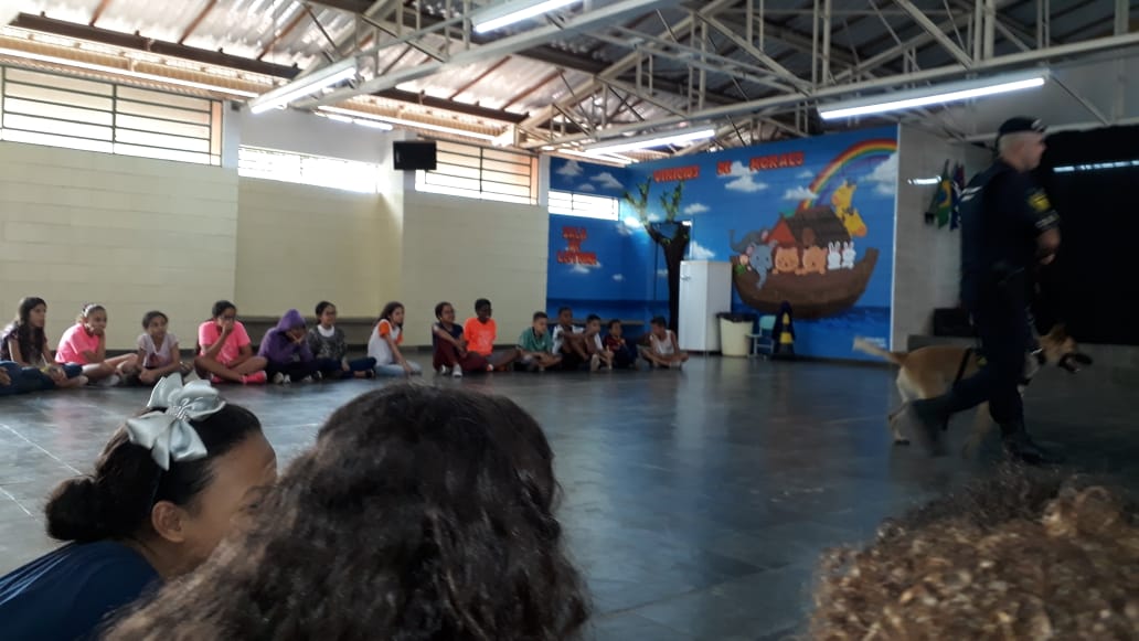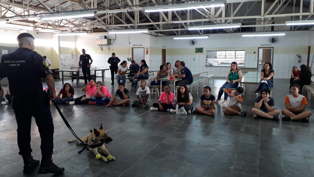 A palestra contou com a apresentação da cadela Safira, e o tema abordado na palestra aos alunos foram RESPONSABILIDADE DA POSSE, NÃO AO ABANDONO, SAÚDE DOS CÃES E COMO SÃO REALIZADOS OS TREINAMENTOS E O PRÓPRIO TRABALHO DA GUARDA CIVIL MUNICIPAL NO EMPREGO DOS CÃES NO COMBATE AO TRÁFICO DE ENTORPECENTES.