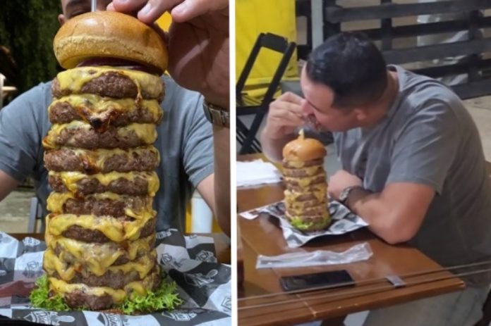 O recorde anterior de Gabriel era um lanche com seis hambúrgueres