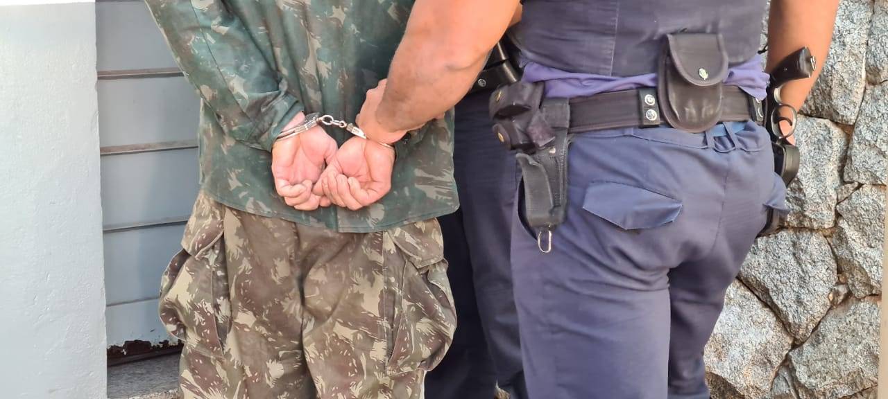 Ao chegarem próximo do local, o indivíduo já estava sendo detido por populares, sendo que na revista pessoal, foi localizada no bolso da calça a pistola de cola quente, R$248,00 em notas e R$40,00 em moedas. Ele vestia uma farda camuflada, semelhante o fardamento do Exército Brasileiro, e ao ser questionado sobre a farda, o homem alegou ser fã do personagem do filme “Rambo” assumindo a autoria do crime.