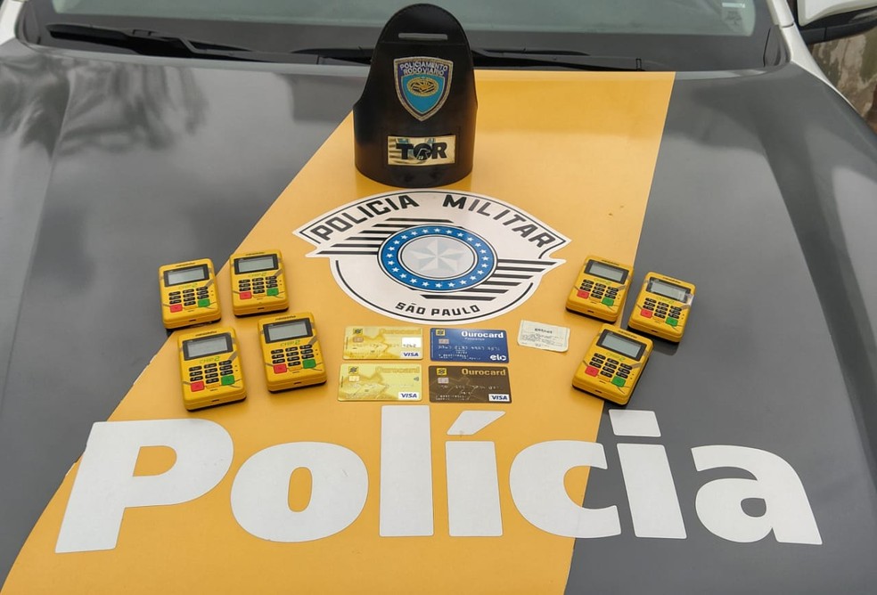 Ainda de acordo com a polícia, uma equipe abordou o suspeito na rodovia Castello Branco conduzindo uma moto. Durante a revista, os policiais encontraram na mochila os cartões e as máquinas.
