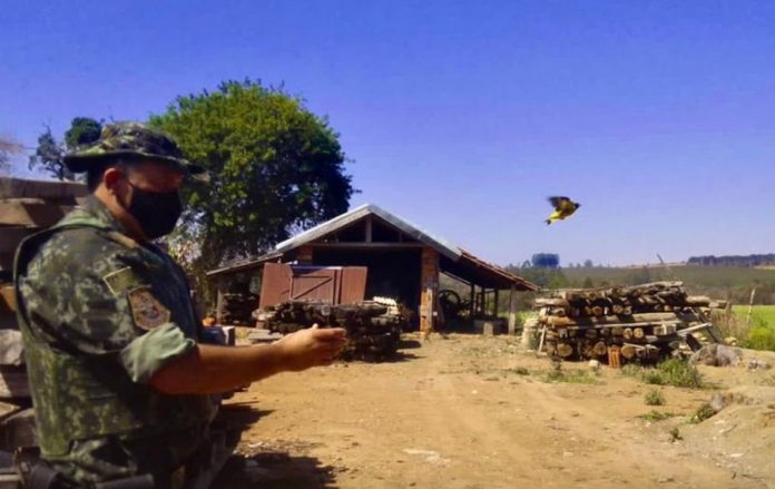 Quatro aves foram devolvidas à natureza, sendo que uma delas, o “Bigodinho”, foi entregue ao dono, pois havia sinais claros de domesticação.