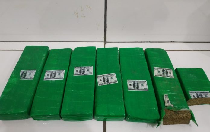 Com autorização da esposa do homem, a equipe entrou na residência, onde ele foi abordado. Um pedaço da droga estava escondido dentro de um guarda-roupas. Dentro do carro, os policiais encontraram mais seis tijolos de maconha embalados e guardados dentro de um saco plástico preto.