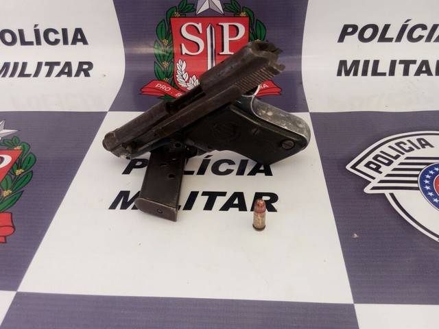 A pistola Beretta calibre 6.35 estava sob a laje da residência. A PM foi ao local após uma denúncia anônima. Ao ser abordado, o homem admitiu que tinha a arma e ainda informou onde ela estava, segundo os policiais.