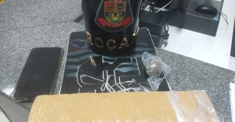 Ao ser algemado, o indiciado se exaltou, onde foi necessário o uso progressivo da força. No bolso da bermuda dele ainda foi localizada ainda uma porção menor aparentando ser maconha.