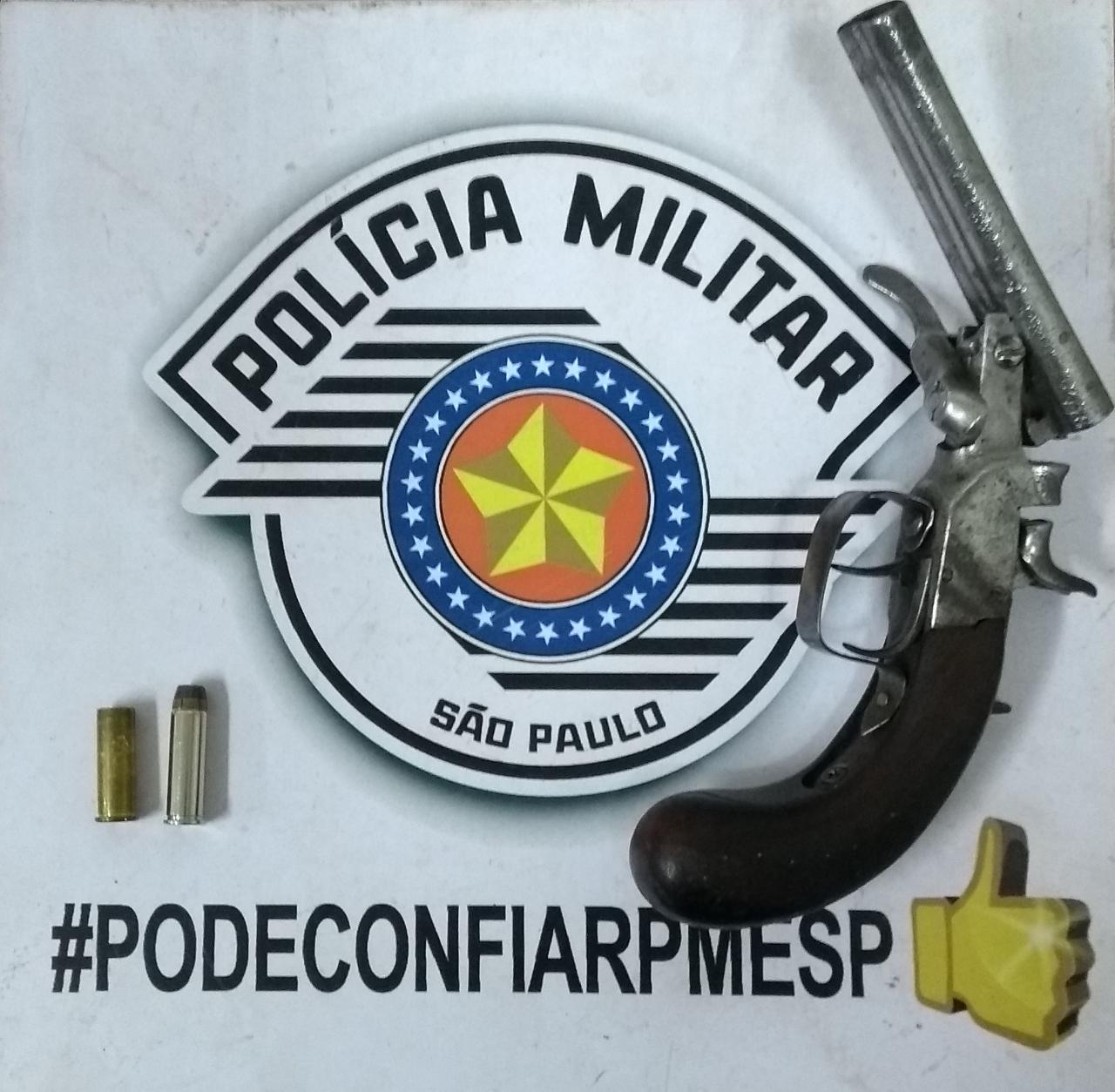 Ele foi preso pela Polícia Militar que ao realizar a vistoria veicular foi encontrado no console uma garrucha cal. 38 com 2 munições com uma delas deflagrada.