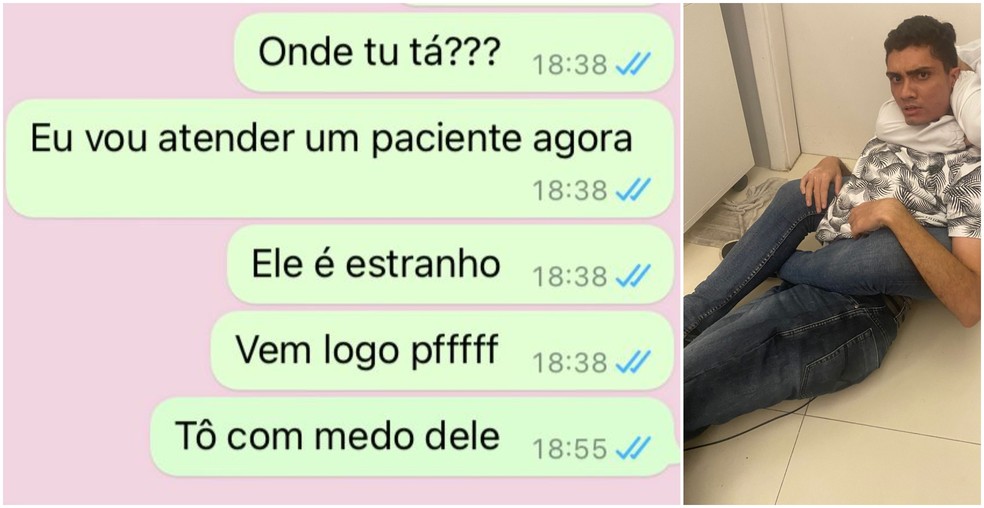 Na mensagem enviada por WhatsApp, a dentista relatou que o paciente era “estranho”. Ela disse estar com medo e pediu para o noivo ir ao local: “Onde tu tá? Eu vou atender um paciente agora. Ele é estranho. Vem logo pffff [por favor]. Tô com medo dele”.