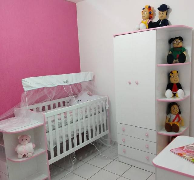 O quarto de Antonella já está todo decorado, com tons em branco e rosa e até bichinhos de pelúcia encaixados no guarda-roupas.