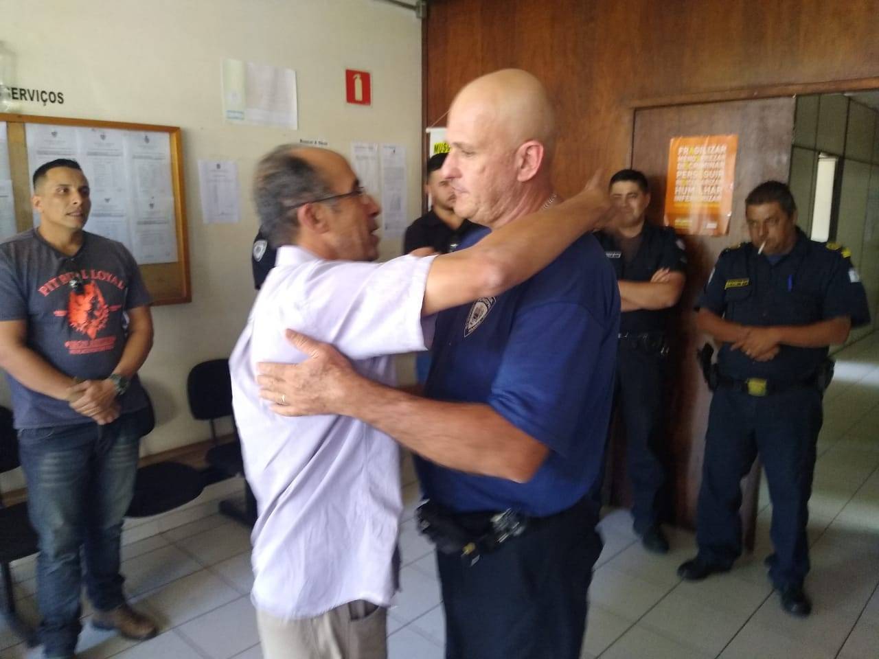 Ele, que está se despedindo da farda em razão da aposentadoria, ganhou abraços dos companheiros que acompanharam a sua trajetória dentro da GCM ararense.