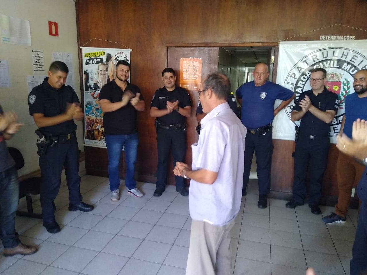 A Guarda Civil Municipal homenageou o GCM João Batista, que se aposentou após 32 anos dedicados à corporação.