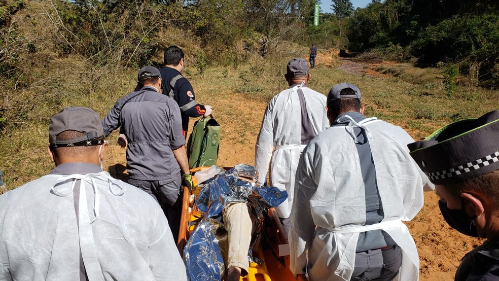 Corpo de Bombeiros precisou retirar Luiz Roberto Gini de um buraco neste sábado (25). A suspeita é de que ele estava se mantendo com a água de uma mina e se alimentando de frutas.