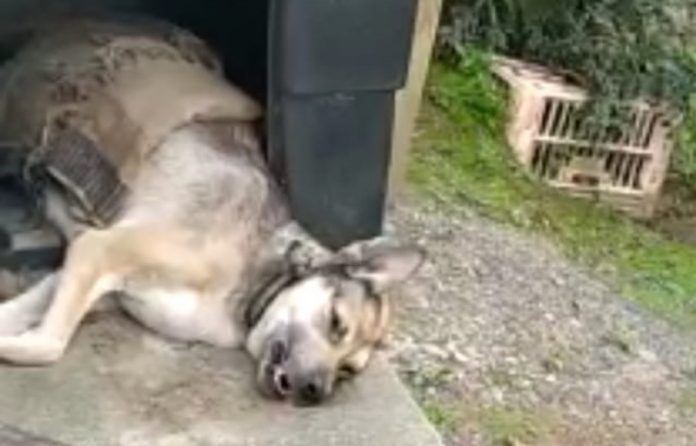 A mulher então acionou a Polícia Civil. Ao chegarem no local, os agentes contataram que o animal estava debilitado, sem forças nem para andar. A cachorra apresentava hipotermia, dificuldade de respirar, além de um cheiro que evidenciou o estado de saúde precário do animal, que já estava há dias naquela situação.