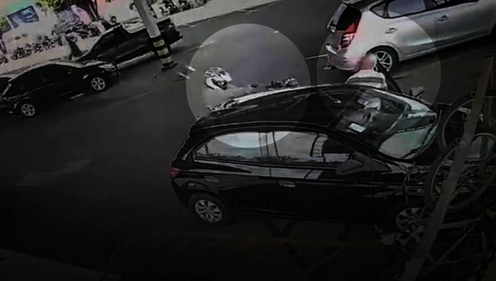 Imagens de câmeras de segurança do estabelecimento mostram o idoso, que trabalha como motorista do mercado, reagindo à abordagem do motociclista, mesmo com a arma apontada em sua direção.