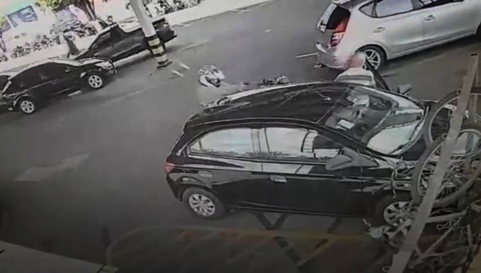 Imagens de câmeras de segurança do estabelecimento mostram o idoso, que trabalha como motorista do mercado, reagindo à abordagem do motociclista, mesmo com a arma apontada em sua direção.