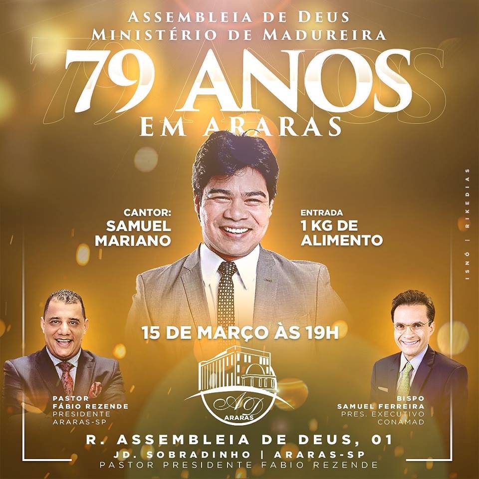 A data que remonta parte importante da trajetória do ministério será comemorada neste dia 15 de março, às 19h quando a igreja fará um grande culto de gratidão, com a presença do cantor Samuel Mariano e banda.