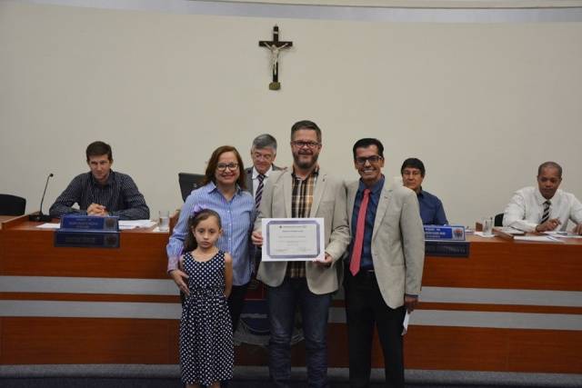 O vereador José Roberto Apolari (PTB) entregou na última segunda-feira (27), durante a 17ª sessão ordinária, uma moção de congratulações ao pastor Luiz Ferreira, que esteve representando a Igreja Batista Água Viva de Araras, a qual realiza serviços relevantes à sociedade no quesito espiritual e social. O pastor esteve acompanhado da filha e da esposa Edna Pereira Gonçalves Ferreira.