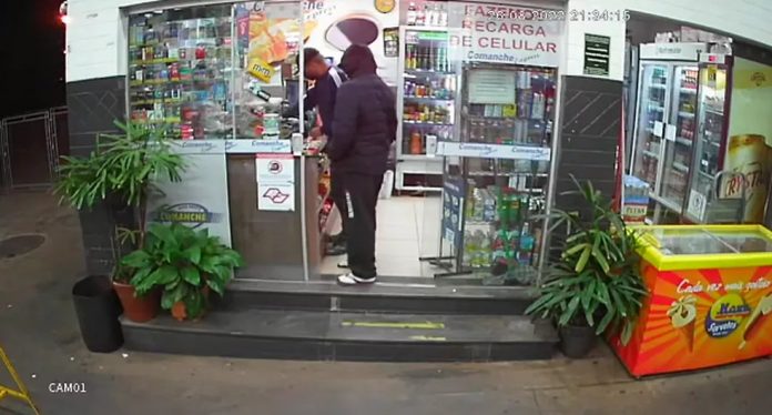 O crime aconteceu por volta das 21h30, no Auto Posto Comanche. De acordo com as imagens de câmeras de segurança do estabelecimento, os ladrões chegaram a pé e abordaram os frentistas, que entregaram R$ 500,00. Em seguida, entraram na loja de conveniência e roubaram mais R$ 132,00 do caixa.