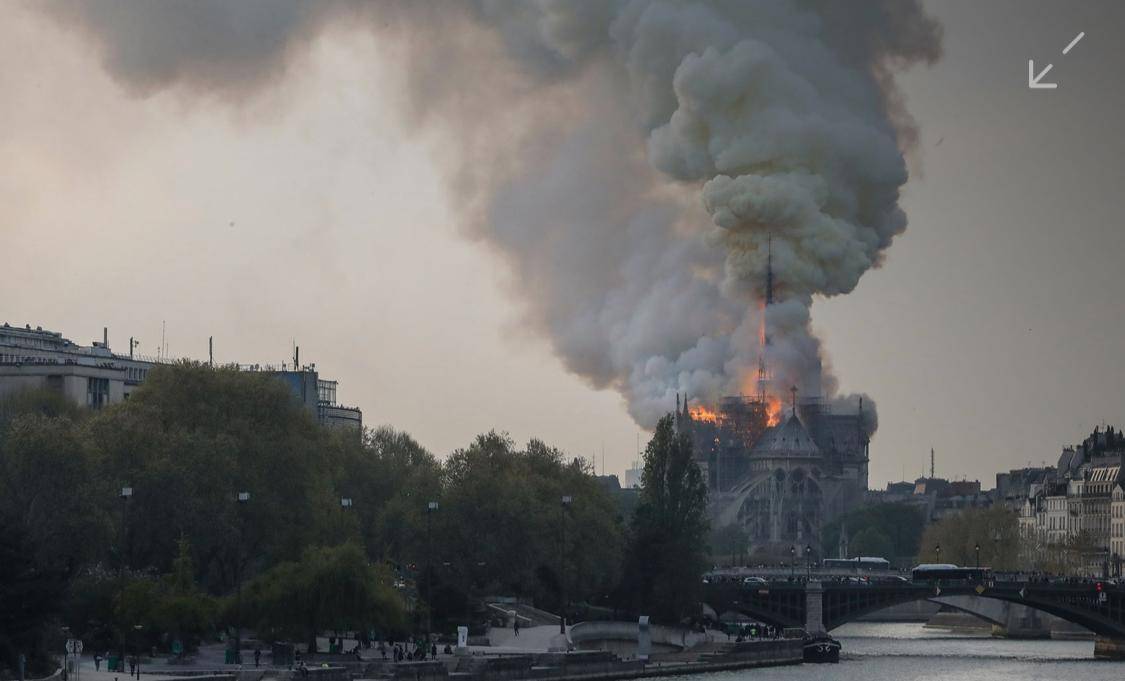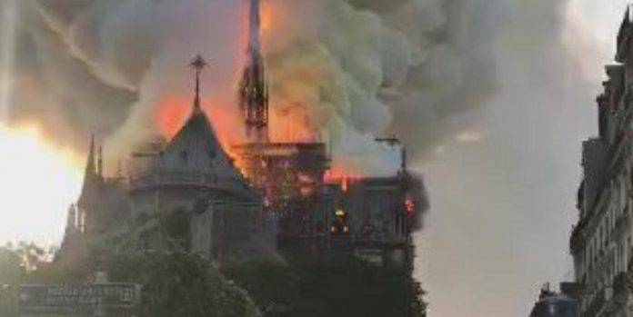 Imagens nas redes sociais mostram fumaça saindo do topo da catedral medieval. Uma grande operação está em curso, de acordo com o Corpo de Bombeiros da capital francesa. Minutos depois do início do incêndio, a torre e o teto da igreja colapsaram completamente.