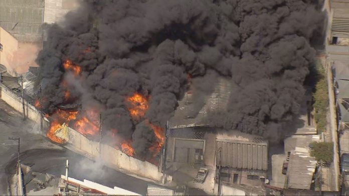 Segundo o Corpo de Bombeiros, o fogo começou por volta das 11h no imóvel de uma indústria química, que atuam com reciclagem de plástico, e avançou para a fábrica de uma outra empresa. Por volta das 14h20, já tinha sido controlado.