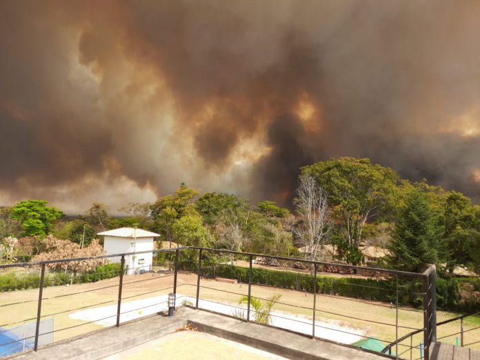 Dois incêndios de grandes proporções atingem a zona rural de Itirapina (SP) nesta segunda-feira (16). Um dos focos é próximo à barragem do Broa, destino turístico regional.