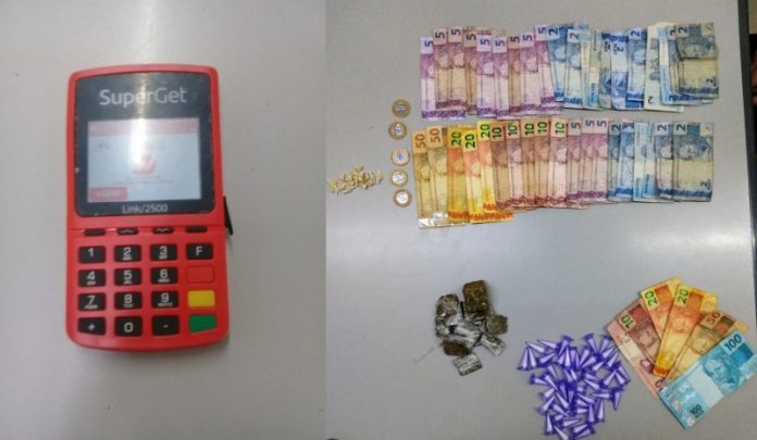 De imediato um dos abordados disse que somente estava alí somente comprando cocaína para seu consumo, já o outro assumiu que estava pelo local realizando a venda das drogas. Com ele foram localizados em sua pochete 47 flaconetes de cocaina e R$ 210,00 reais em dinheiro, além de uma máquina de cartão utilizada para o recebimento dos “clientes” usuários.