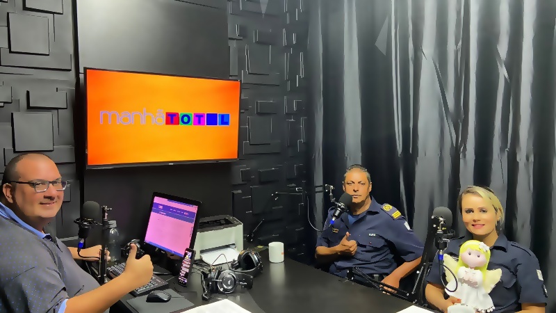 Na manhã desta quarta-feira (4), o inspetor Almir, chefe da Divisão Operacional da Guarda Civil Municipal de Araras (SP), acompanhado da GCMF Mayra e da “Angelina”, estiveram no programa Manhã Total da Rádio Vem Com A Gente.