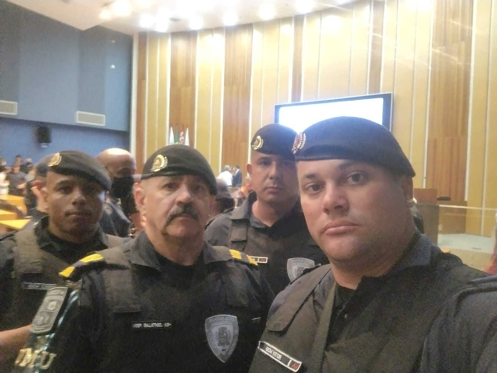 Na noite de quinta-feira (16), o inspetor Salathiel e os GCMS Vitor, Costa e De Araujo, que fazem parte da divisão de ROMU – Ronda Ostensiva Municipal de Araras (SP), estiveram na Câmara Municipal da cidade de São Bernardo do Campo (SP), no evento de comemoração de cinco anos de criação da ROMU no município.