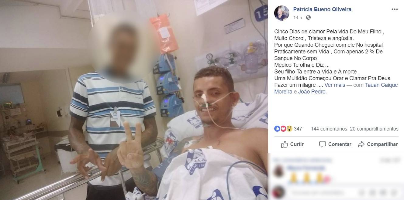 O jovem ararense João Pedro da Costa, de 20 anos, segue internado em Limeira (SP) após uma confusão generalizada que terminou com três jovens esfaqueados por volta das 4h30 da manhã de terça-feira (5), após as atividades organizadas pela Prefeitura de Cordeirópolis (SP), durante o carnaval 2019. Em uma postagem no Facebook sua mãe Patrícia Bueno de Oliveira, fez um registro emocionante sobre sua recuperação.